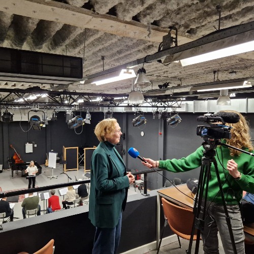 Omroep Friesland maakte een reportage over de koor-dirigentencursussen in het Noorden van het land. Uitzending is 23 februari 2026 op radio tussen 06.00 en 09.00 uur en op TV vanaf 17.00 uur elk half uur in het programma ''Hjoed''(omroep Friesland). Met o.a. Koornetwerk Trainee Sandra Plat- Roede. Op foto: Liesbeth van Hoffen, bestuurslid Koornetwerk Nederland. De dirigentencursussen zijn een gezamenlijk initiatief van 4 Koornetwerkleden: Bond van koren in Drenthe, Bond van koren Groningen, Bond van Zangkoren in Friesland en Koorplein Noord Nederland. Met steun van KCZB Noord en amateurkunst ondersteuningsinstellingen KultuurLoket en Kunst &Cultuur Drenthe. Het Friese Keunstwerk biedt daarnaast een verdiepingscursus ''Klank'' aan voor koordirigenten. Info: Www.koorpleinnoordnederland.nl